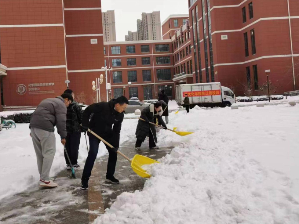 党委迅速行动,先后于12月11日、14日、15日,组织师生党员、学生骨干、青年志愿者在C4楼周侧、B1南侧及西侧责任区及时开展积雪清扫活动,为大家安全出行保驾护航。