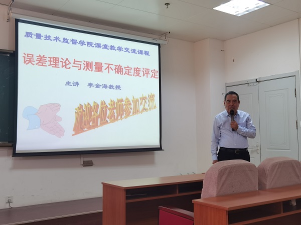 退休教师李金海教授做了“误差理论与测量不确定度评定”课程的教学示范,李老师在教学示范过程中回顾了国家质量基础的历史进程、看球直播