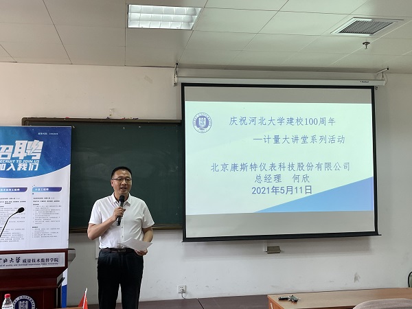 2021年5月11日下午,作为庆祝河北大学建校100周年——计量大讲堂系列活动之一,受院长方立德之邀,北京康斯特仪表科技股份有限公司总经理何欣为看球直播app测控技术与仪器专业百余名师生奉献了一场精彩的报告,报告的题目为《中国高端仪器产业现状》。