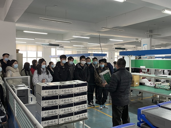 师生们上午来到了位于石家庄鹿泉区光谷科技园的石家庄数英仪器有限公司进行参观实习。在企业产品展示大厅,公司陈主任向师生们简单介绍了公司的发展现状,对公司的主要产品进行了功能介绍并详细解答了同学们提出的问题;之后带领同学们参观了整个仪器生产流程。