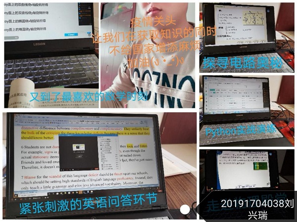 当前形势下不能返回校园上课只能在家通过网络学习,课上的学习效果可能不如面对面的授课,但是通过这种学习方式可以给我们学生提供反复学习的机会,可以通过视频和直播回放不断巩固和加强课上内容。遇到不会的难题时,同学可以在群里讨论,大家各抒己见,直到豁然开朗。