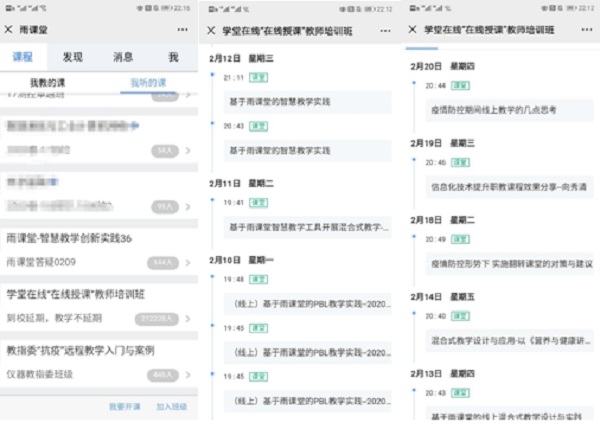 开课前,学校推荐了中国大学MOOC(爱课程)、超星泛雅、学堂在线、智慧树网等网络教学平台,由于了解到雨课堂不需要安装任何APP,微信关注公众号即可使用,因此选用雨课堂作为教学平台。从雨课堂官网提前下载雨课堂插件,建立测试班级,并学习使用。为了更好利用雨课堂的功能,还参加了一系列的培训活动。