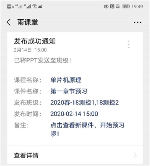 在雨课堂功能测试过程中,发现开学前期访问量过大,服务器经常响应不够顺畅,为防止开课过程中的突发事件,制定了三种开课方案。一是利用雨课堂直播,同时签到、随堂测试和发布习题。二是QQ或者钉钉屏幕分享,雨课堂随堂测试和发布习题,QQ群或者钉钉群答疑三是录播QQ群分享,同时发布测试和答疑。由于QQ屏幕分享没有直播回放的功能,最终确定使用钉钉直播。为保障三种方案的顺利实施,利用雨课堂中已有的慕课视频,制作了预习课件,并在开课前3天发布,方便学生进行预习;提前上传了预习课件,教学课件和习题到雨课堂服务器;利用钉钉进行了课程视频录制。