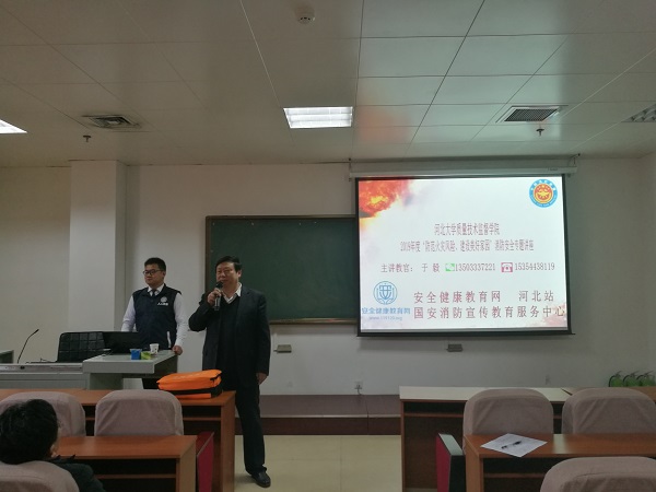 郝真鸣书记对讲座进行了主持并讲话,安全健康教育网河北站宣传教官于毅从火灾的危害和预防火灾的重要性;发现火情要及时报警,报警人应注意哪些;火灾来临,如何在老师的正确指导下有序撤离;宿舍防火知识,宿舍里禁用的违规电器;消防器材的使用等几个方面进行了针对性的宣传及培训。