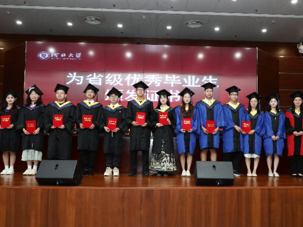 典礼第五项,由看球直播app党委书记哈艳为省级优秀毕业生颁发证书。