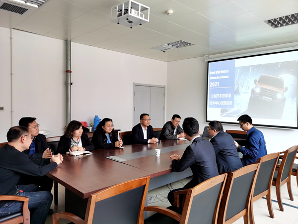 齐元波总经理就长城汽车张家港技术中心整体情况、人才引进、主营业务、海外市场等情况进行了介绍和说明;方立德院长就看球直播app本科及研究生专业设置、学科建设特色优势、各专业培养模式进行了介绍;长城汽车张家港技术中心招聘负责人就公司校园招聘进行了宣讲,主要就公司发展战略、生产布局、研发方向、人才需求方向和培养模式等情况进行了详细介绍。