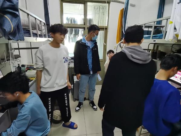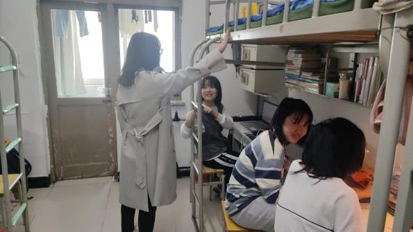 同学积极上阵,共同打造温馨、整洁的宿舍环境。团委老师李森、刘梦天、李博文走进宿舍,对同学们宿舍卫生整理成果进行检验和点评,鼓励同学们学习借鉴优秀宿舍的整理方式,将宿舍卫生一直保持下去,共同创造良好的宿舍环境。同时,在走访过程中,三位老师与同学们亲切交流,了解同学们的生活和学习状况,为闭环管理下的同学们带来了温暖。