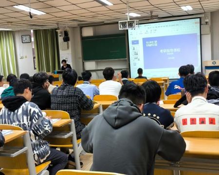 接下来范老师用热情洋溢的语言从考研流程、考研复习及考研院校的选择三方面接合自己多年的考研经验进行讲解,向同学们传授她的考研策略。范老师对考研过程中需要注意的细节进行重点讲解,告诫同学们考研要趁早准备,先选择考研院校,再根据该院校对考研成绩的要求制定自己的考研计划。